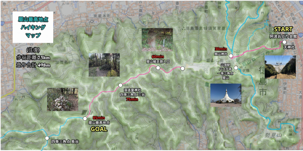 この記事では徳島県徳島市の眉山ハイキングについてご紹介しています。