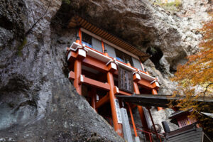 石門洞はかつて行場として使われていた、洞窟を利用して建てられた寺社。