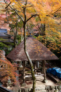 境内にはモミジの木が多く、紅葉の時期は特に見事。