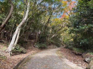 こちらも道は石畳になっていますが、歩行者も比較的少ないためか落葉や枯枝で少し荒れています。