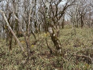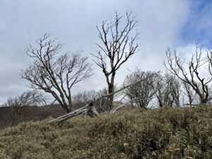時期は12月上旬、天候は曇り。登山口付近の気温は6℃、山頂付近は雪がちらついていました。