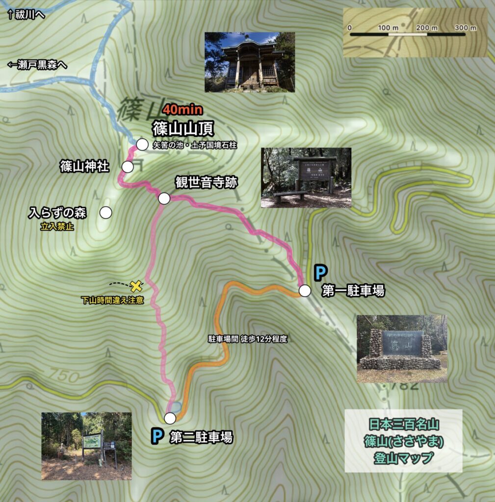 第一駐車場 → 篠山山頂 → 第二駐車場 → 第一駐車場
