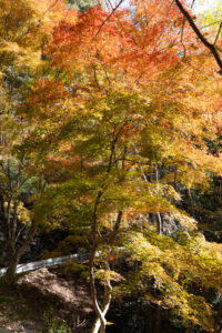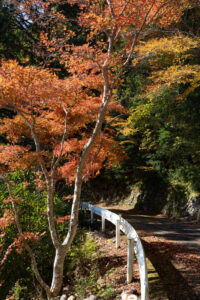 11月下旬は林道の紅葉は見頃、天候は雲のある晴れ。