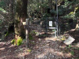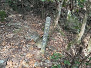 8合目に当たる篠山第一駐車場および第二駐車場からのコースが最短で、第一駐車場は宿毛市と愛南町で県境になります。