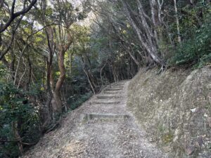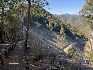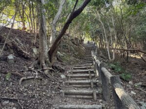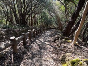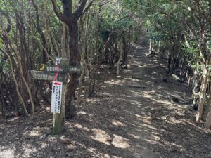 ※2026年1月当時、嵐瀬休憩所・通り岩休憩所の間に一部崩落があり、千羽ヶ岳の登山道入口には通行禁止の看板が未だかかっていました。現場にはしっかり迂回路ができており、立ち入り禁止区域に入らず安全に通行可能です。トレラン大会のコースにも設定されているとのことで問題ないと判断し歩きました。