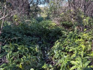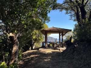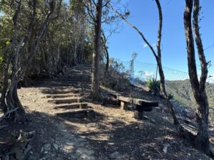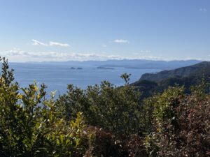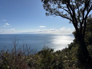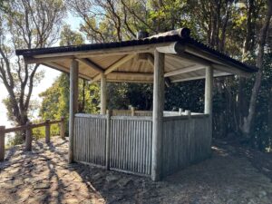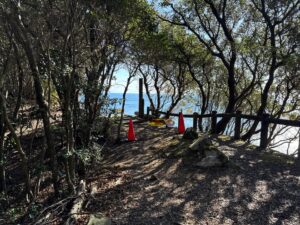 休憩所から眺められる海崖を楽しみつつ、海沿いの稜線をアップダウンしながら歩き切る実に爽快なコースです。