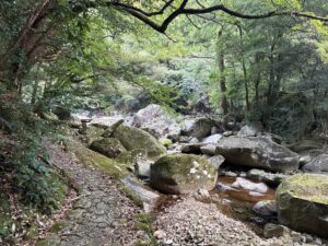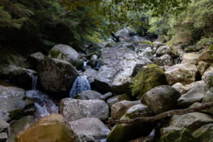 雪輪の滝へは渓谷を歩きながらおよそ1.2kmほど。