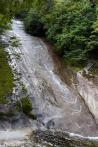 滑床渓谷は全体に巨大な花崗岩の一枚岩の上を滑るように流れる清流が魅力的。